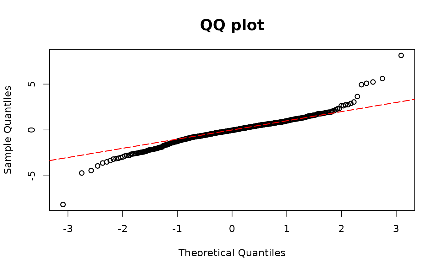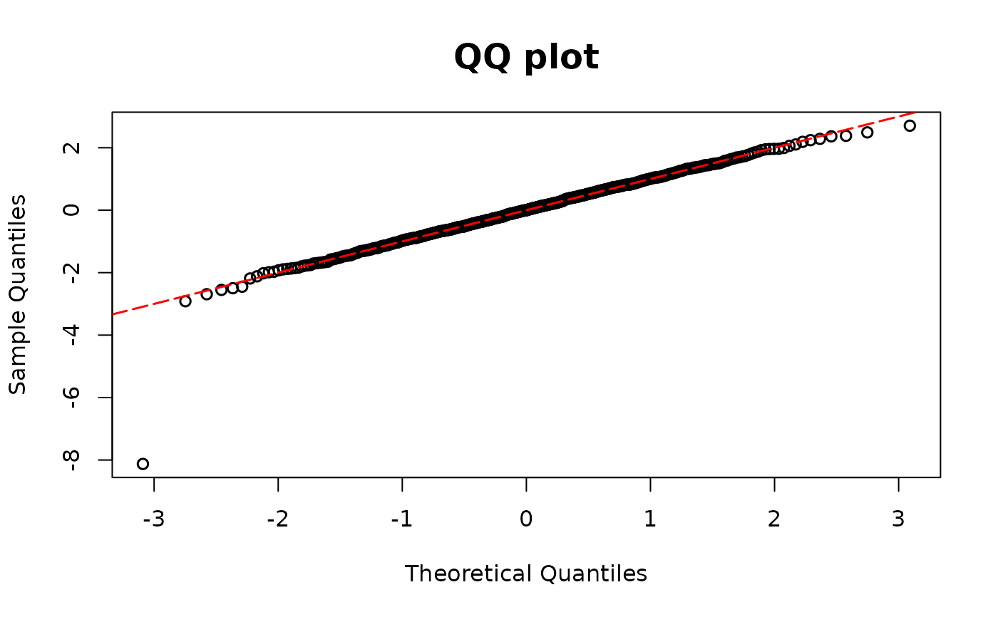 graphics::abline()to modify the reference (red) 45° line in the QQ plot. If left empty, a default red dashed line is drawn.- ...